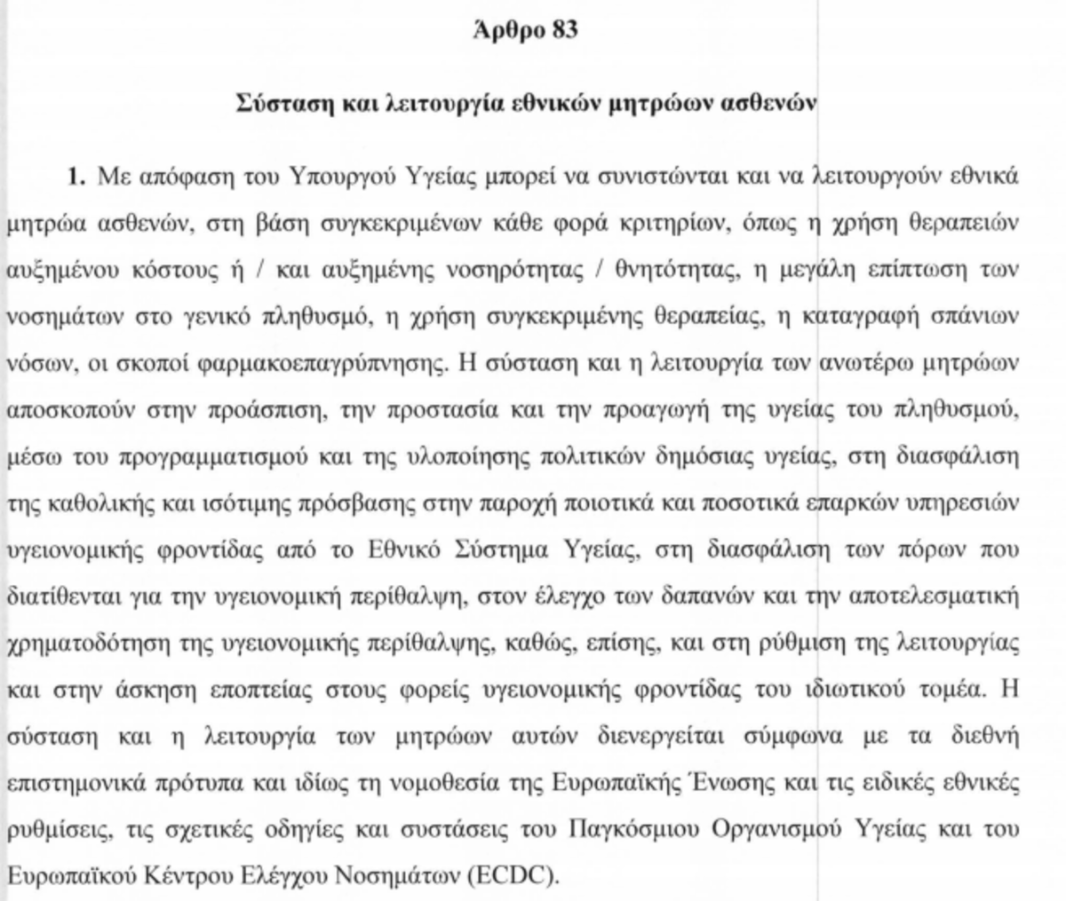 Το νομοσχέδιο με την ονομασία «Εκσυγχρονισμός και Αναμόρφωση Θεσμικού Πλαισίου Ιδιωτικών Κλινικών, Σύσταση Εθνικού Οργανισμού Δημόσιας Υγείας, Σύσταση Εθνικού Ινστιτούτου Νεοπλασιών και λοιπές διατάξεις» μπορείτε να το διαβάσετε αναλυτικά εδώ.