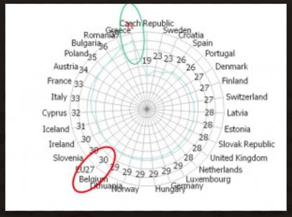 Δείτε το σχετικό διάγραμμα για τη χρηματοδότηση της ΠΦΥ ανάμεσα στις χώρες της Ε.Ε.