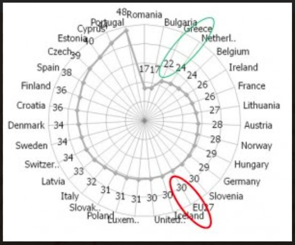 Δείτε το σχετικό διάγραμμα για την ενδονοσοκομειακή δαπάνη των χωρών της Ε.Ε.