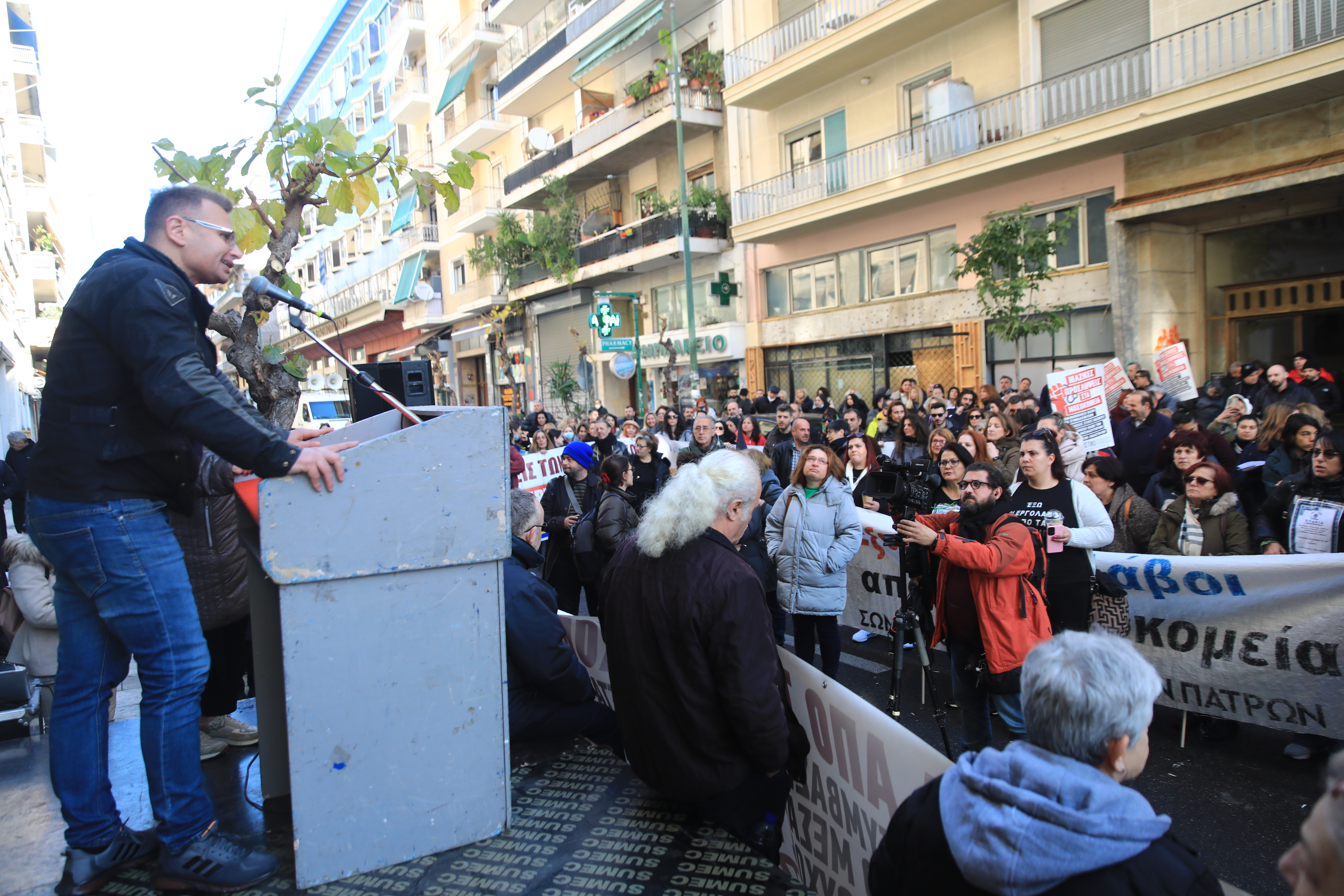 Ο υπουργός Υγείας Άδωνις Γεωργιάδης κατέβηκε στη συγκέντρωση για να μιλήσει με τους διαδηλωτές – εργαζόμενους, ωστόσο οι εντάσεις «ανέβηκαν» γρήγορα και μάλιστα κάποιος πέταξε καφέ κατά του υπουργού Υγείας την ώρα που αποχωρούσε.