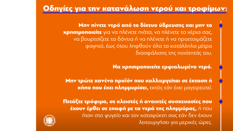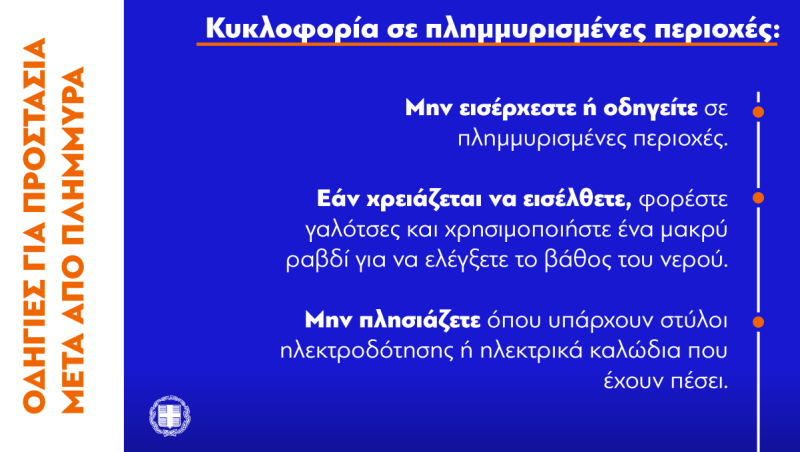 Πιο συγκεκριμένα, οι πολίτες στις πλημμυρισμένες περιοχές της Θεσσαλίας θα πρέπει να λάβουν τα εξής μέτρα: