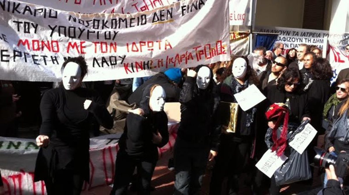 Με έναν εφευρηματικό τρόπο πραγματοποίησαν συγκέντρωση διαμαρτυρίας έξω από το υπουργίο υγείας οι γιατροί του ΕΟΠΥΥ, Δημοσίων νοσκομείων νοσηλευτικό προσωπικό και διοικητικό.