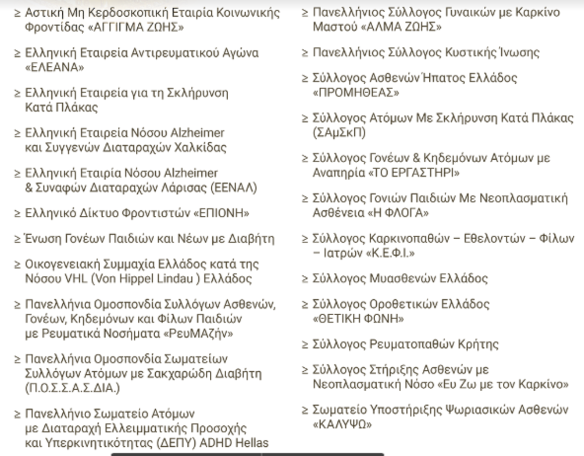 - Τις προσπάθειες ευαισθητοποίησης, οργάνωσης και δράσεων των συλλόγων ασθενών της χώρας