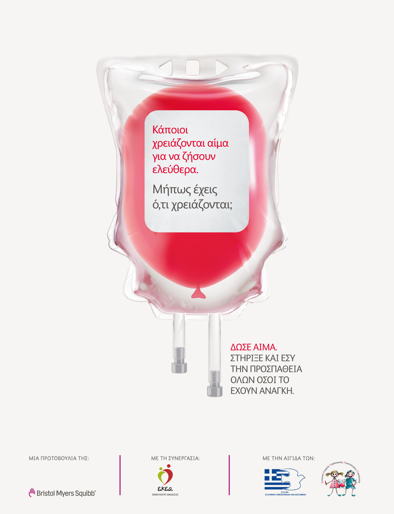 Bristol Myers Squibb: «Κάποιοι χρειάζονται αίμα. Μήπως έχεις ό,τι χρειάζονται;»