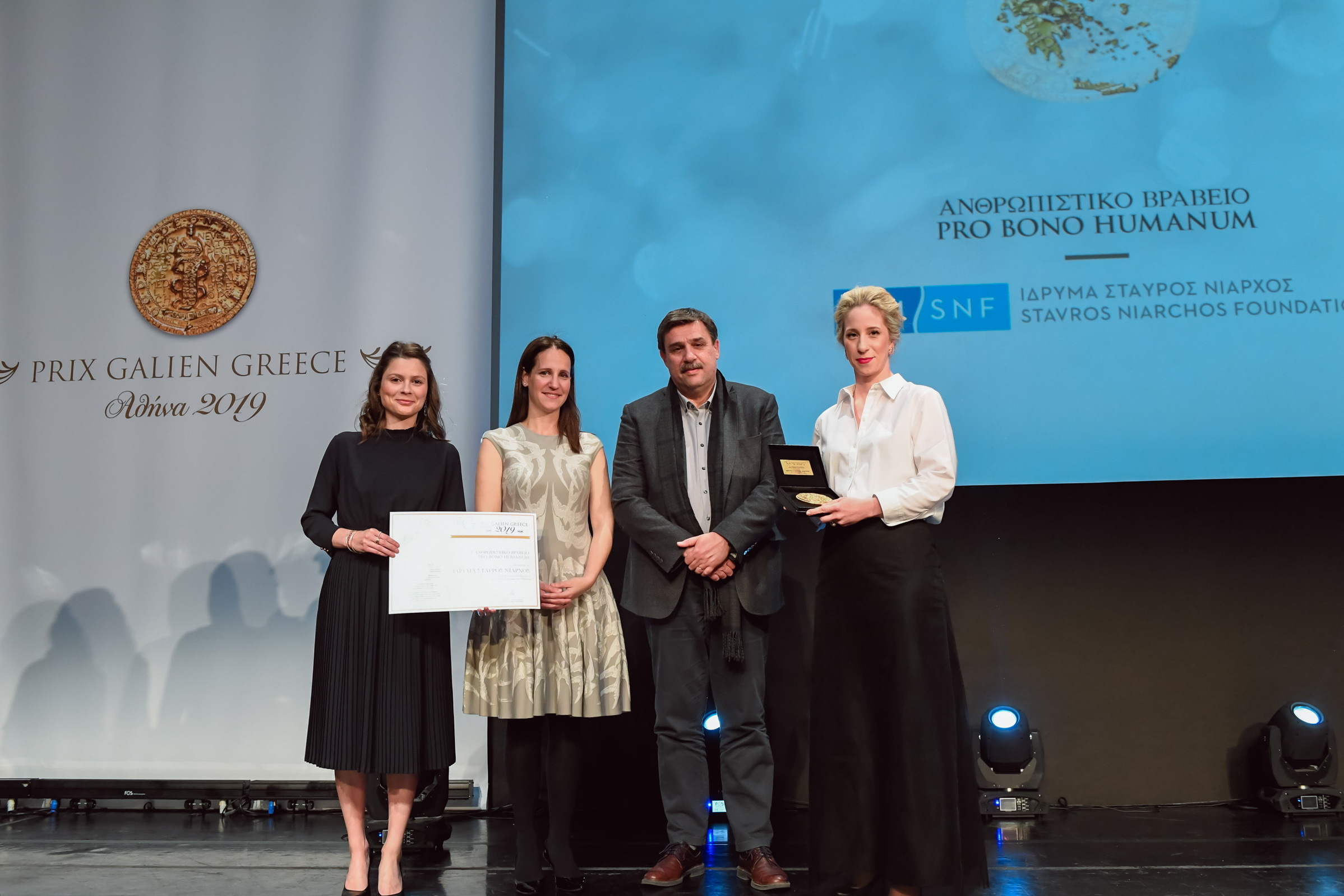 Ιδιαίτερη στιγμή της βραδιάς ήταν η απονομή του Ανθρωπιστικού Βραβείου «Pro Bono Humanum», το οποίο έχει ως στόχο να αναδείξει μια σπουδαία προσωπικότητα που έχει συνεισφέρει σημαντικά στο χώρο της υγείας στη χώρα μας. Το συγκεκριμένο βραβείο απονεμήθηκε φέτος από τον Υπουργό Υγείας, κ. Ανδρέα Ξανθό στο «Ίδρυμα Σταύρος Νιάρχος», για τη σημαντική συνεισφορά του στο χώρο της Υγείας. Με την παραλαβή του βραβείου, οι εκπρόσωποι του ΙΣΝ δήλωσαν: “Λαμβάνουμε το βραβείο αυτό μαζί ως ένδειξη της φιλοσοφίας που χαρακτηρίζει στο σύνολο τη διοίκηση, τους εργαζόμενους και, κατ’ επέκταση, το έργο του Ιδρύματος Σταύρος Νιάρχος, η οποία βασίζεται στη συνεργασία όπως αυτή εκφράζεται μέσα από τα αποτελέσματα. Όλοι εμείς στο ΙΣΝ, μαζί με τους ανθρώπους που εργάζονται στους οργανισμούς που υποστηρίζουμε, προσπαθούμε να βελτιώσουμε τις συνθήκες ζωής όσο το δυνατόν περισσότερων συνανθρώπων μας. Αυτός είναι ο κοινός στόχος που μας ενώνει, σε όλους τους τομείς που δραστηριοποιούμαστε, στον τομέα της υγείας, του πολιτισμού, της κοινωνικής πρόνοιας, του αθλητισμού και της παιδείας.”