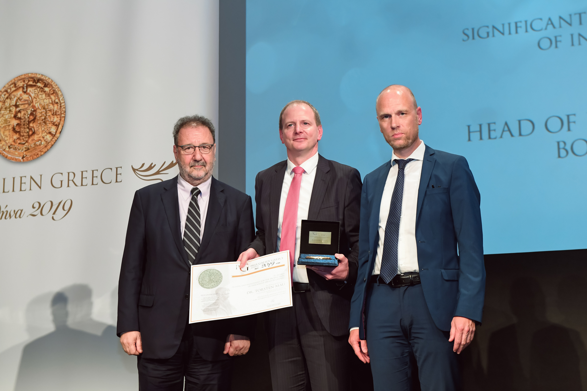 Ο Dr. Torsten Mau, Head of HP Supply & Global Quality, Boehringer-Ingelheim GmbH, που επιβραβεύτηκε για την μεγάλη επένδυση παραγωγής καινοτόμων φαρμάκων της Boehringer Ingelheim στην Ελλάδα, δήλωσε παραλαμβάνοντας το βραβείο του: «Θα ήθελα να ευχαριστήσω από καρδιάς την οργανωτική επιτροπή των Prix Galien Greece για την βράβευση μου. Θεωρώ μεγάλη τιμή να μου απονέμεται το εξαιρετικό αυτό βραβείο αυτό στην χώρα που γέννησε τον Γαληνό και τον Ιπποκράτη. Με το βραβείο αυτό δίνεται ιδιαίτερη έμφαση στο ρόλο και την αξία της ποιότητας σαν βασικό χαρακτηριστικό της καινοτομίας. Νοιώθω ιδιαίτερη υπερηφάνεια για το ότι η Εμπαγλιφλοζίνη, το αντιδιαβητικό φάρμακο της Boehringer Ingelheim που κέρδισε το διεθνές Prix Galien το 2018, παράγεται από το εργοστάσιο μας στο Κορωπί, αναδεικνύοντας το σε ένα στρατηγικής σημασίας εργοστάσιο για την εταιρεία μας. Αφιερώνω το βραβείο αυτό στους εργαζόμενους της Boehringer Ingelheim Hellas, αλλά και στους διαβητικούς όλου του κόσμου με την υπόσχεση να μην επαναπαυθούμε ποτέ στην ποιότητα της παραγωγής των καινοτόμων και καταξιωμένων φαρμάκων μας».