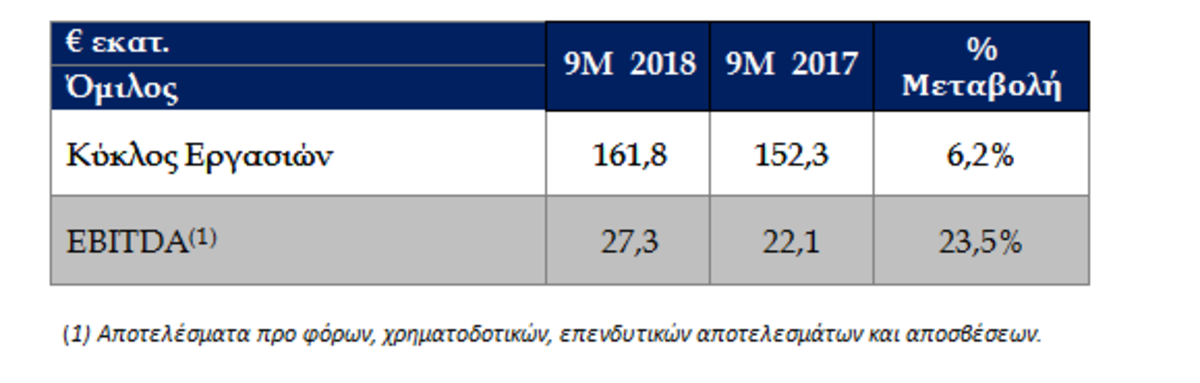 (1) Αποτελέσματα προ φόρων, χρηματοδοτικών, επενδυτικών αποτελεσμάτων και αποσβέσεων.