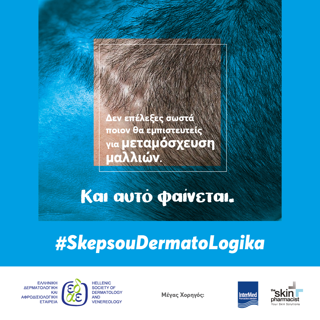 Το δυνατό μήνυμα ευαισθητοποίησης βασίζεται σε ένα αφήγημα με το οποίο, δυστυχώς, ταυτίζονται πολλοί: «Δεν επέλεξες σωστά ποιον θα εμπιστευτείς για το πρόσωπο, το σώμα, τα μαλλιά σου. Και αυτό φαίνεται». #SkepsouDermatoLogika.