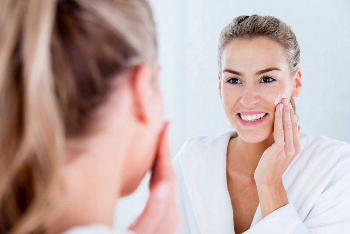 Βρέξτε το πρόσωπό σας με χλιαρό νερό. Βάλτε λίγο από το αγαπημένο σας ενυδατικό καθαριστικό προσώπου στο χέρι σας. Μπορείτε να χρησιμοποιήσετε και κάποια ενυδατική κρέμα βέβαια.