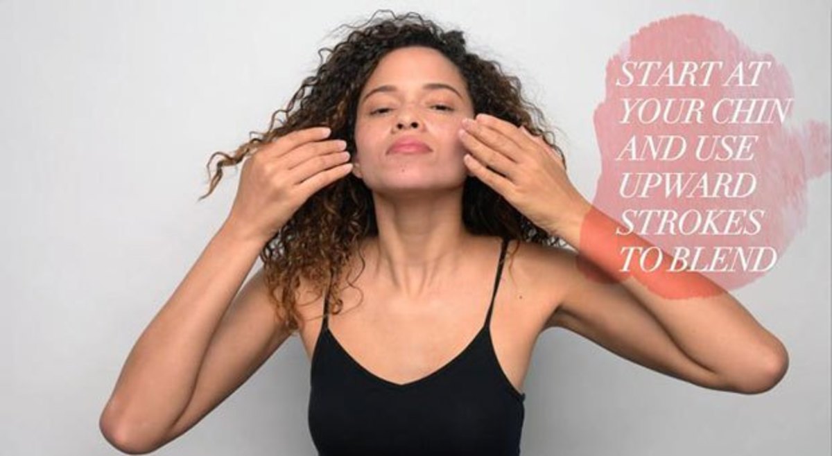 3) Ξεκινήστε από το πηγούνι και με κινήσεις προς τα επάνω απλώστε ομοιόμορφα το προϊόν στο πρόσωπό σας