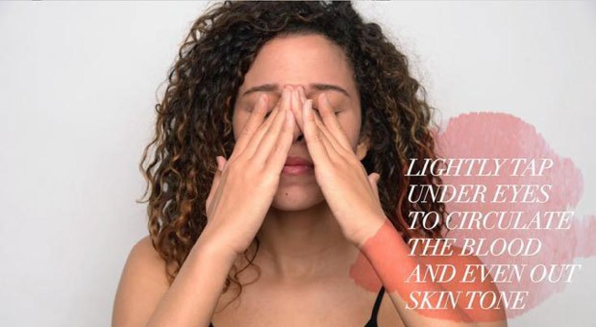 4) Με απαλά «χτυπήματα» βάλτε λίγο προϊόν και γύρω από τα μάτια, για να διεγείρετε την κυκλοφορία του αίματος