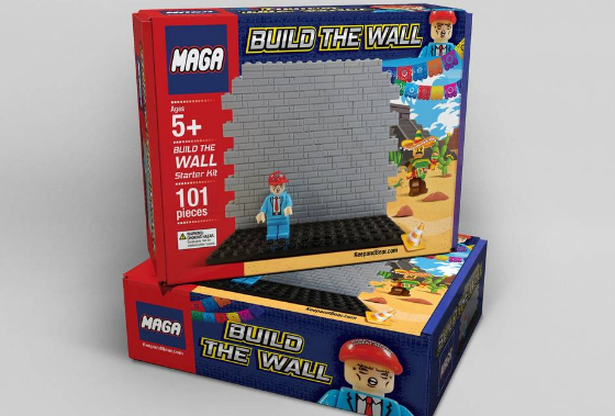 Στο κουτί υπάρχουν 101 πλαστικά κυβάκια, μια μικρή πλαστική φιγούρα που είναι ο ίδιος ο Ντόναλντ Τραμπ θυμωμένος και φορώντας το προστατευτικό καπέλο του οικοδόμου, πάνω στο οποίο αναγράφεται το ακρωνύμιο MAGA (Make America Great Again, το προεκλογικό σύνθημα του Ντόναλντ Τραμπ). Στο εσωτερικό του κουτιού υπάρχει ένα γράφημα του προϊόντος, στο οποίο ένα Τείχος απεικονίζεται να μπλοκάρει την κίνηση μιας φιγούρας που φοράει σομπρέρο και πόντσο, κρατάει μαράκες και στέκεται μπροστά από έναν ναό των Μάγια!