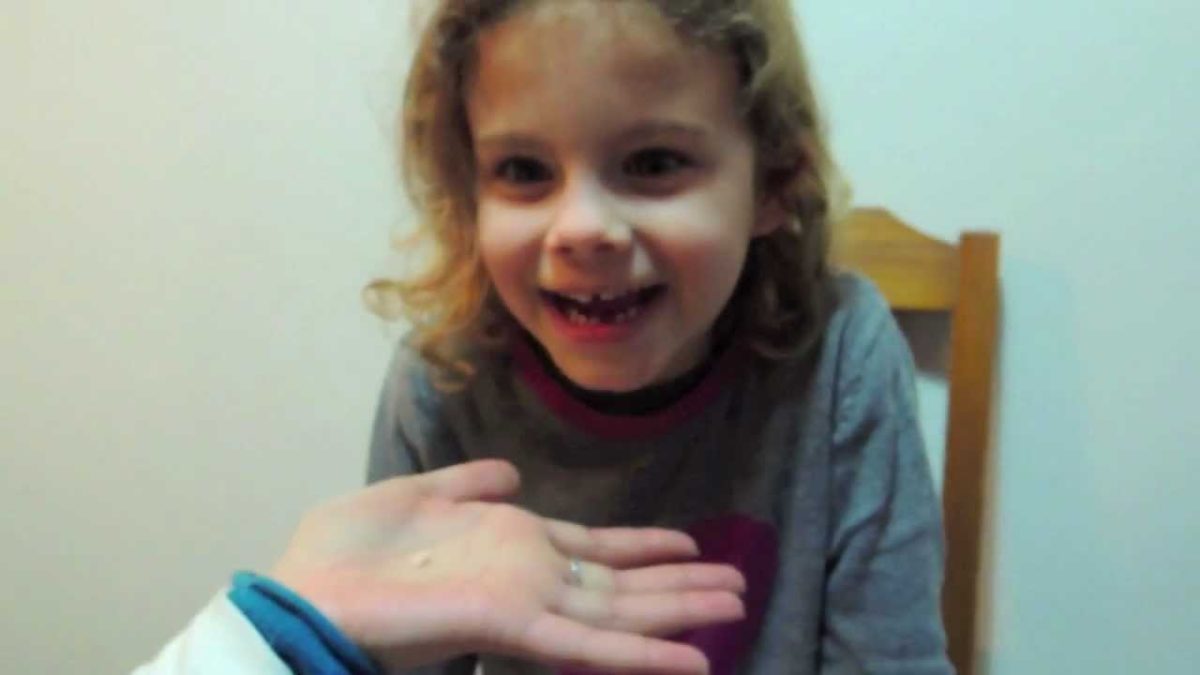 Με το χαμόγελο στα χείλη και δίχως ίχνος φόβου, η αποφασισμένη μικρή έδεσε μια κλωστή στο “έτοιμο” να πέσει δόντάκι και στη συνέχεια έδεσε την άλλη άκρη της κλωστής σε ένα αυτοκινητάκι. Το αυτοκινητάκι είναι από πίστα αγώνων για μικρά παιδιά. Αφού η μικρή προετοιμάστηκε ψυχολογικά, πάτησε το γκάζι και το αυτοκινητάκι ξεκίνησε…
