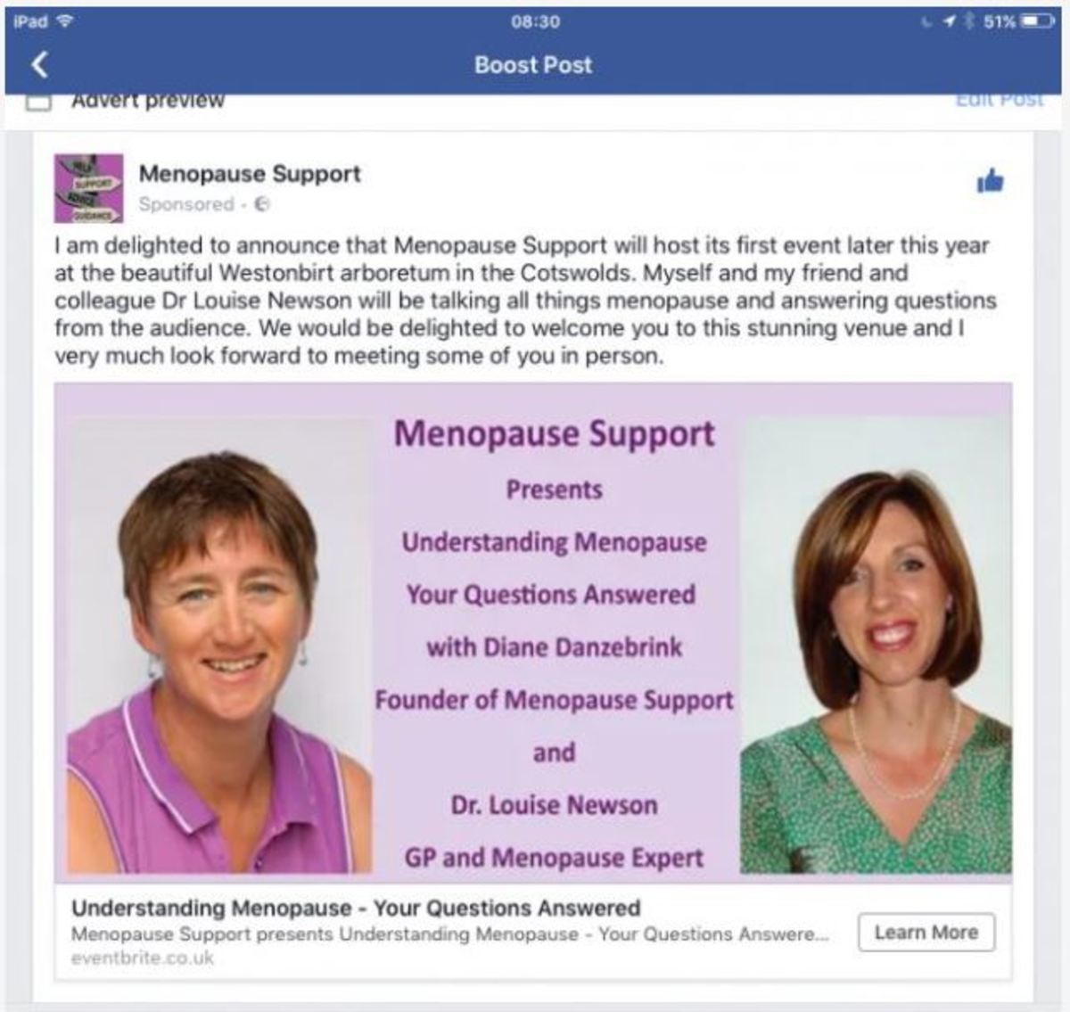 Και τον περασμένο Ιούλιο μια άλλη γυναίκα επικεφαλής μιας ομάδας υποστήριξης για γυναίκες με εμμηνόπαυση, επιτέθηκε στο Facebook επειδή η σελίδα της (σ.σ. ήταν και εκείνη με την μορφή “διαφήμισης”) απαγορεύτηκε εξ ολοκλήρου με την αιτιολογία ότι επρόκειτο για “υλικό ακατάλληλο για ανήλικους”.