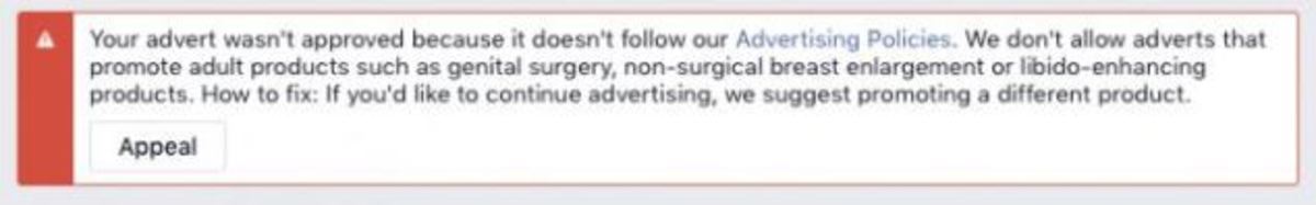 Η ανάρτηση που απαγορεύτηκε από το Facebook, επειδή χρησιμοποιούσε την λέξη «λίμπιντο», η οποία πάντως δεν υπάρχει στην διαφήμιση