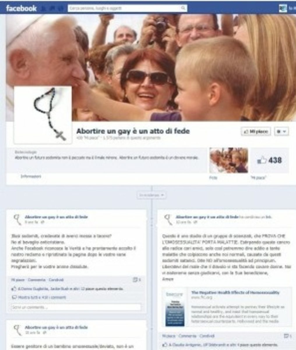 Στον τοίχο του γκρουπ, το οποίο έχει φωτογραφία ένα κομποσχοίνι με ένα σταυρό και από κάτω μια άλλη με τον Πάπα να ευλογεί ένα παιδάκι, δίνονται και χρήσιμες οδηγίες για το πως να καταλάβουμε ότι κάποιο παιδί πρόκειται να γίνει ομοφυλόφιλο: “Τα έμβρυα (μωρά) που παραμένουν τυλιγμένα γύρω από τον ομφάλιο λώρο, είναι σίγουρα ομοφυλόφιλα.”