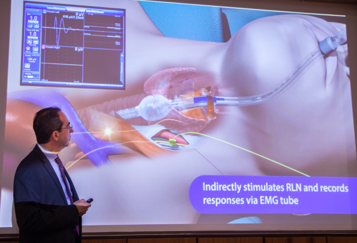 Η τεχνική αυτή αποτελεί την εξέλιξη της παλαιότερης μεθόδου του νευροδιεγέρτη, ο οποίος ελέγχει το νεύρο της φωνής μόνο σε ορισμένες στιγμές της εγχείρησης. Η μέθοδος της συνεχούς παρακολούθησης της φωνής, που ήδη πραγματοποιείται σε ενήλικες, δίνει τη δυνατότητα της ασφαλούς έκβασης ακόμα και δύσκολων περιστατικών, όπως είναι η επανεγχείρηση στο θυρεοειδή αδένα, ο πλήρης λεμφαδενικός καθαρισμός (κεντρικός και πλάγιος) σε προχωρημένο καρκίνο του θυρεοειδούς και η εγχείρηση σε επαγγελματίες φωνής.