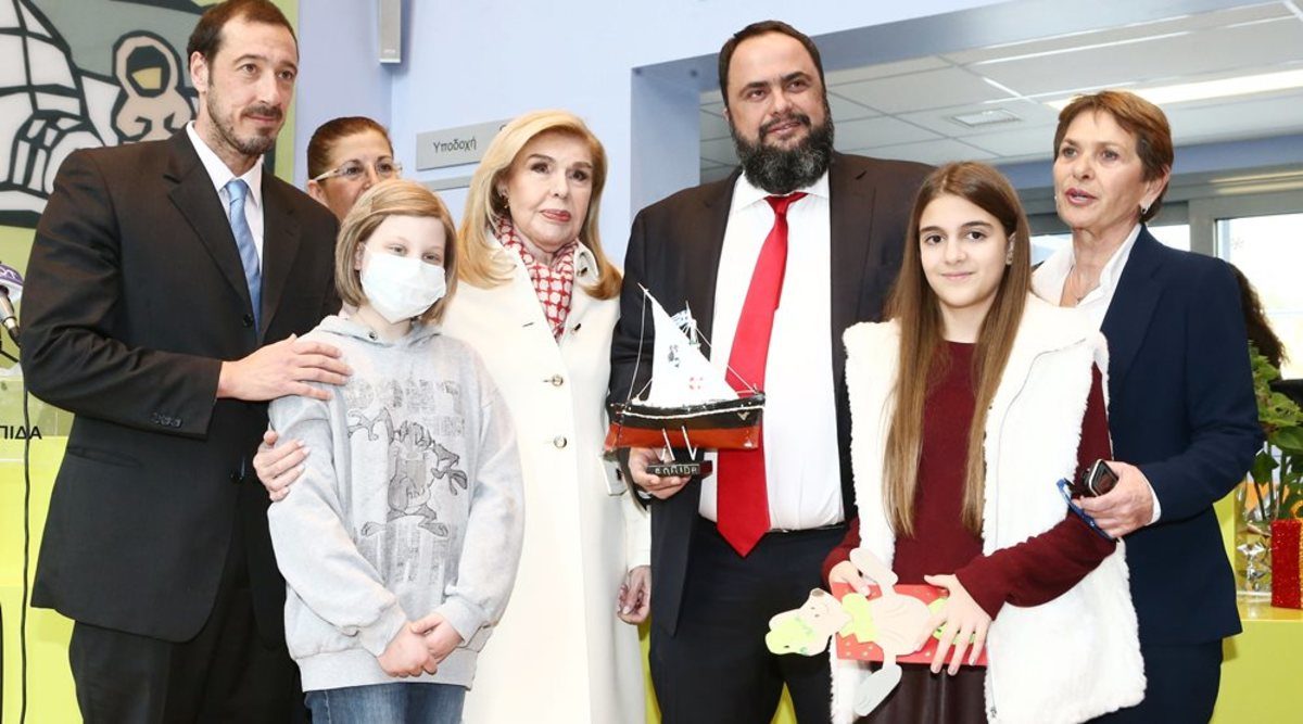 Η κυρία Μαριάννα Βαρδινογιάννη από την πλευρά της ευχαρίστησε τον κ. Μαρινάκη και τα μέλη της ομάδας για την βοήθεια και την ευαισθησία τους και έδωσε στον πρόεδρο του Ολυμπιακού τιμητική πλακέτα.