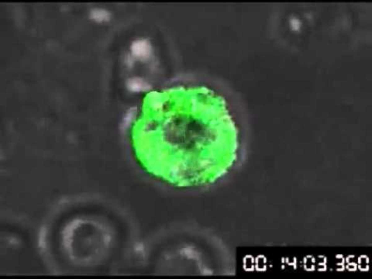 Το πρώτο βίντεο είναι πραγματικό και οι επιστήμονες το έχουν τραβήξει με ειδική νανο – κάμερα. Με πράσινο χρώμα είναι ο ιός. Παρακολουθείστε πόσος χρόνος χρειάζεται για να μολύνει και το διπλανό του κύτταρο και εκείνο με τη σειρά του το διπλανό και πάει λέγοντας σε μια αλυσίδα θανάτου.