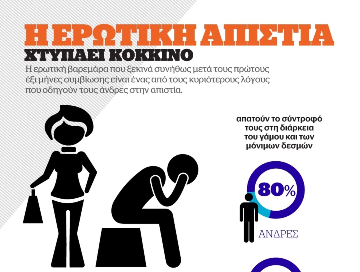 Η ερωτική βαρεμάρα που ξεκινά συνήθως μετά τους πρώτους έξι μήνες συμβίωσης είναι ένας από τους κυριότερους λόγους που οδηγούν τους άνδρες στην απιστία.