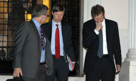 Μια αιφνίδια συνάντηση που πραγματοποιήθηκε το απόγευμα της Δευτέρας προκάλεσε ερωτηματικά στους παροικούντες στην οδό Αριστοτέλους. Άδωνις Γεωργιάδης, Ανδρέας...
