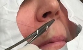 Όπως θα δείτε, η δερματολόγος έκανε μια τομή στο σημείο κάτω από τη μύτη και πάνω από τα χείλη...