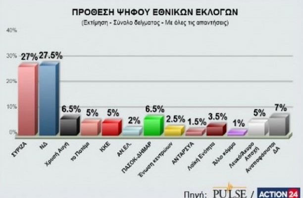 Άλλη μία δημοσκόπηση της εταιρείας Pulse για λογαριασμό του τηλεοπτικού σταθμού Action24 δείχνει και πάλι ανατροπή στις προεκλογικές προβλέψεις....