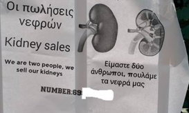 Δύο συνάνθρωποί μας πωλούν τους νεφρούς τους όπως δείχνει το χαρτί που επικόλλησαν σε τοίχο σχολείου, στην οδό Αγίου...