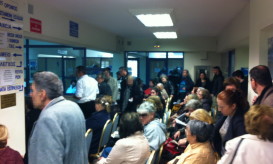 Μέχρι τα πεζοδρόμια φθάνουν πια οι ουρές των γιατρών που προσπαθούν να εξυπηρετηθούν.