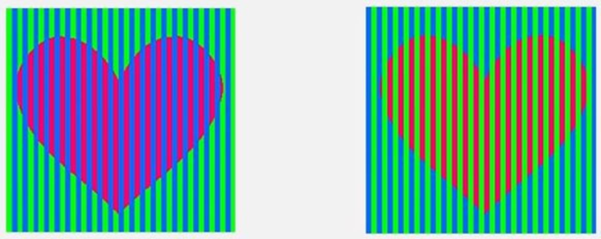 Οι μπλε ρίγες, όταν περνούν πάνω από την καρδιά, την κάνουν να φαίνεται μωβ, ενώ οι πράσινες ρίγες, όταν περνούν πάνω από την καρδιά, την κάνουν να φαίνεται πορτοκαλί.