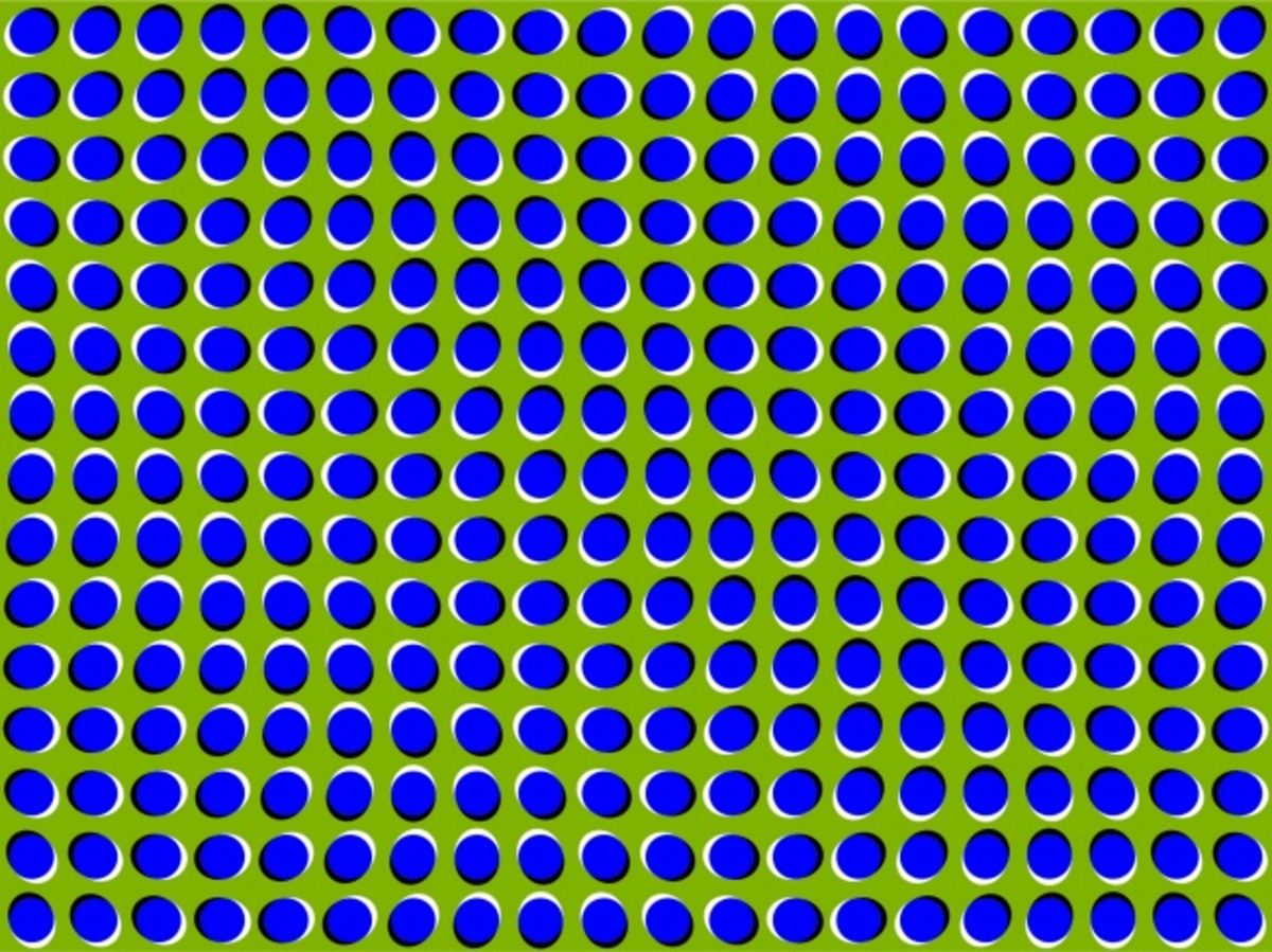 Κάντε κι εσείς το εξής πείραμα με αυτές τις φωτογραφίες. Εστιάστε το βλέμμα σας σε ένα μόνο σημείο της εικόνας, σε μια κουκκίδα για παράδειγμα, και θα δείτε ότι θα σταματήσει κάθε κινητικότητα στην εικόνα.