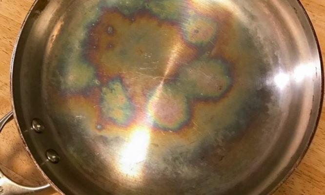 Τι γίνεται με αυτόν τον περίεργο αποχρωματισμό στα ανοξείδωτα σκεύη λόγω θερμότητας; Ευτυχώς, αυτό το περίεργο φιλμ “σαν ουράνιο τόξο” στα μαγειρικά σας σκεύη είναι εύκολο να διορθωθεί.