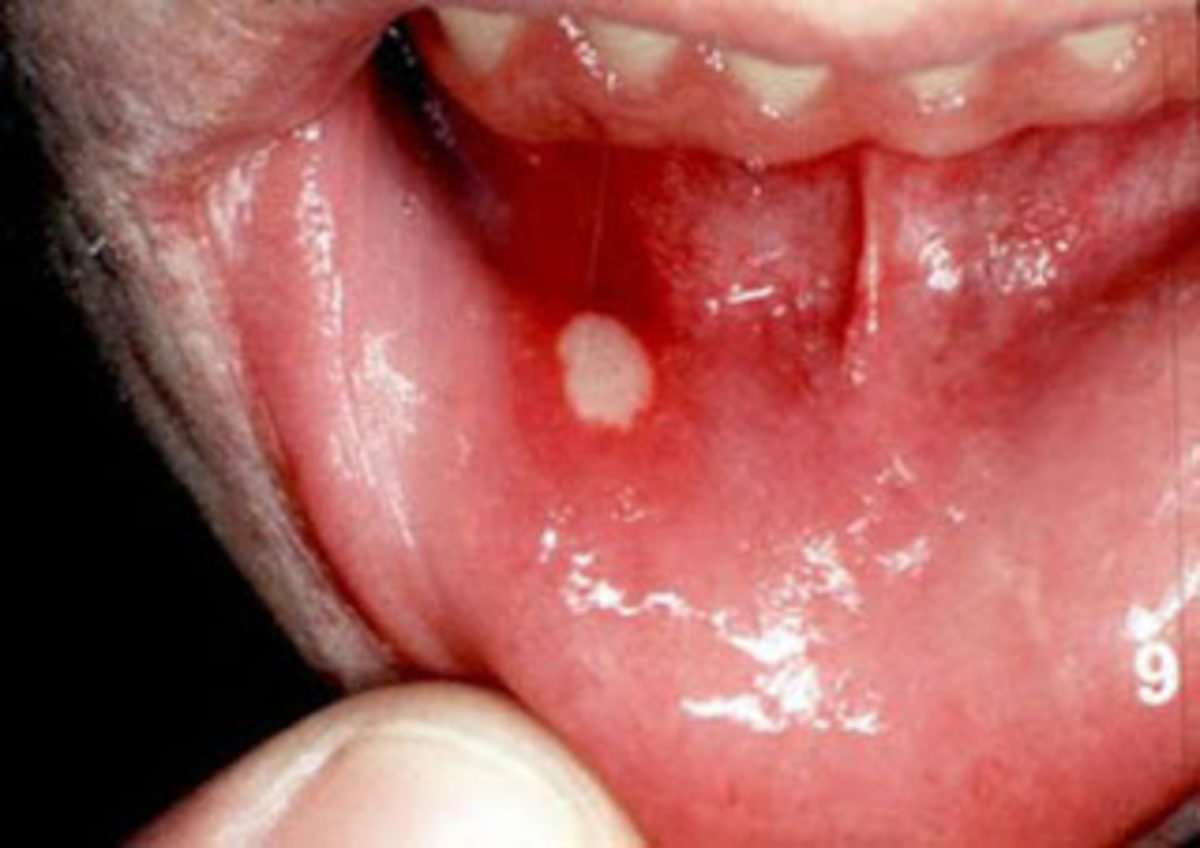 Τα τυπικά συμπτώματα περιλαμβάνουν απότομη εμφάνιση πυρετού, ανορεξία, ευερεθιστότητα και έντονο στοματικό πόνο. Οι ασθενείς αναπτύσσουν στοματικές βλάβες στον βλενογοννο φυσαλίδες οι οποίες σπάνε και σχηματίζονται μεγάλα επώδυνα ελκη.Τα ούλα γίνονται ερυθηματωδη και ευαίσθητα.