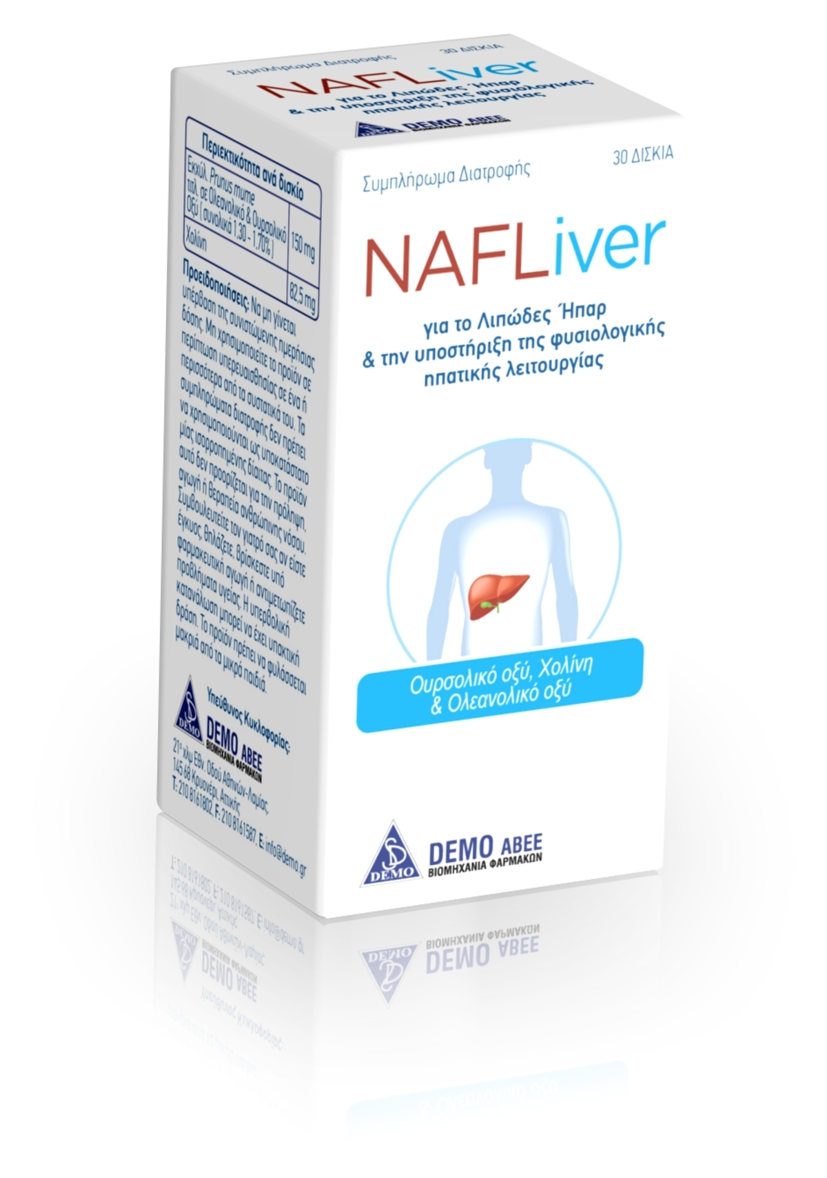 Η Φαρμακοβιομηχανία DΕMO ABEE, κυκλοφόρησε νέο και καινοτόμο προϊόν για το οποίο πρόσφατες κλινικές μελέτες απέδειξαν την ευεργετική δράση του πατενταρισμένου εκχυλίσματος που περιέχει Ουρσολικό και Ολεανολικό οξύ, στο λιπώδες ήπαρ και στην υποστήριξη της φυσιολογικής ηπατικής λειτουργίας.