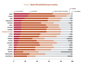 Αντίθετα, τα επίπεδα ικανοποίησης ήταν υψηλότερα σε χώρες με λιγότερες ώρες εργασίας, όπως η Εσθονία, η Ολλανδία και το Λουξεμβούργο.
