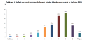 Τα στοιχεία δείχνουν πόσο ικανοποιημένοι δηλώνουν οι πολίτες από τη ζωή τους, αλλά και τις σημαντικές διαφορές που καταγράφονται μεταξύ κοινωνικών ομάδων.