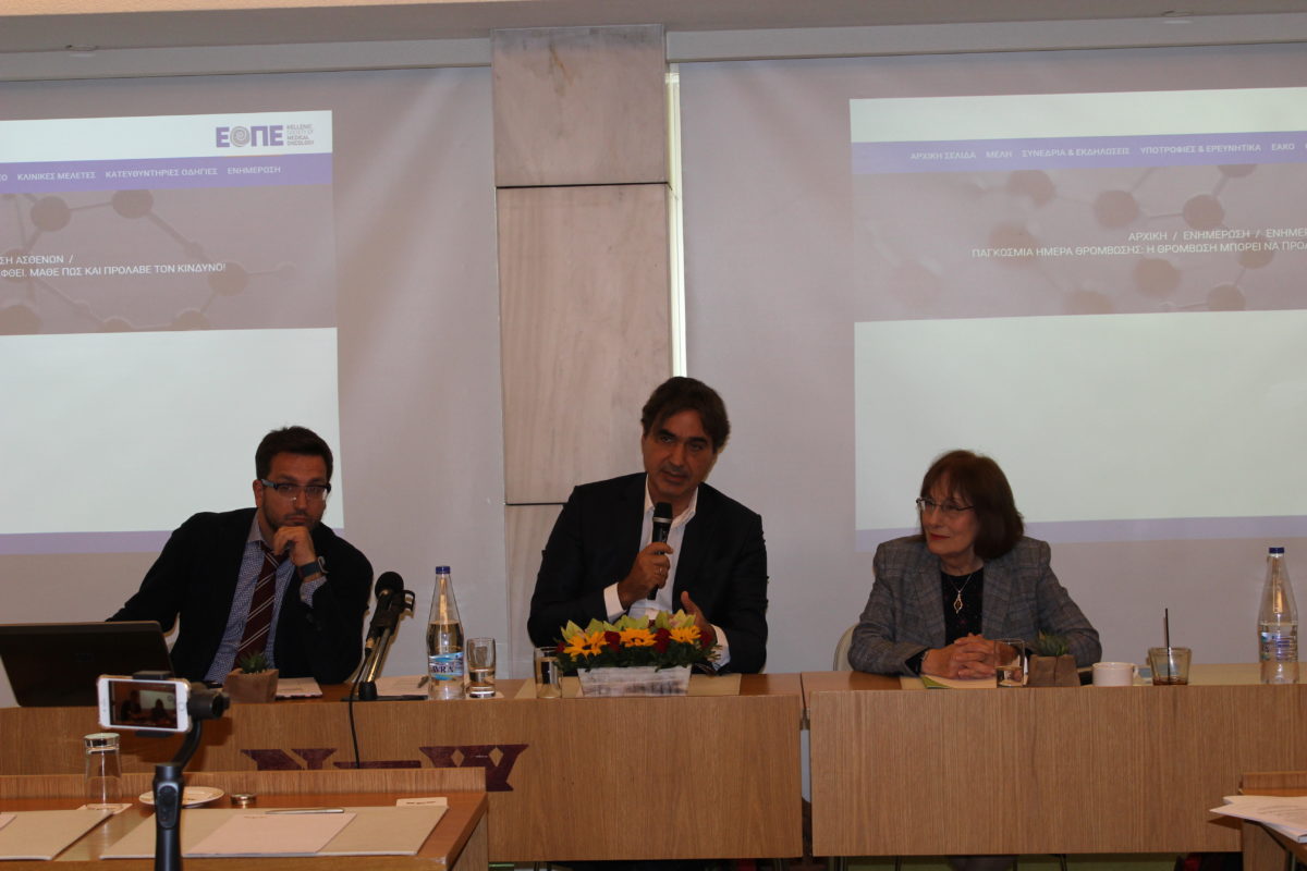 Τη σχέση μεταξύ φλεβικής θρόμβωσης και καρκίνου και τις συνέπειές της συζήτησαν ο κ. Ιωάννης Π. Μπουκοβίνας, Παθολόγος Ογκολόγος, Πρόεδρος της Εταιρείας Ογκολόγων Παθολόγων Ελλάδος, (ΕΟΠΕ) η κα Καίτη Αποστολίδου, Αντιπρόεδρος European Cancer Patient Coalition, ECPC, (Ευρωπαϊκός Συνασπισμός Ασθενών με Καρκίνο) & Πρόεδρος της Ελληνικής Ομοσπονδίας Καρκίνου καθώς και ο κ. Κυριάκος Σουλιώτης, Αναπληρωτής Καθηγητής Πολιτικής Υγείας στη Σχολή Κοινωνικών και Πολιτικών Επιστημών Πανεπιστημίου Πελοποννήσου.