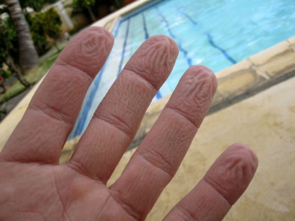 Πρόκειται για μια θεωρία που με απλά λόγια εξηγεί ότι το “ρυτίδιασμα” στα δάχτυλα έχει τις ρίζες του στο εξελικτικό παρελθόν του ανθρώπου, όταν για να επιβιώσει έπρεπε να πιάνει με γυμνά χέρια πράγματα μέσα στο νερό, δίχως να του γλιστράνε, καθώς επίσης και να περπατάει με γυμνά πόδια σε ρηχούς βυθούς και έπρεπε να στηρίζεται καλύτερα, να δημιουργείται τριβή για να μην ολισθαίνει.