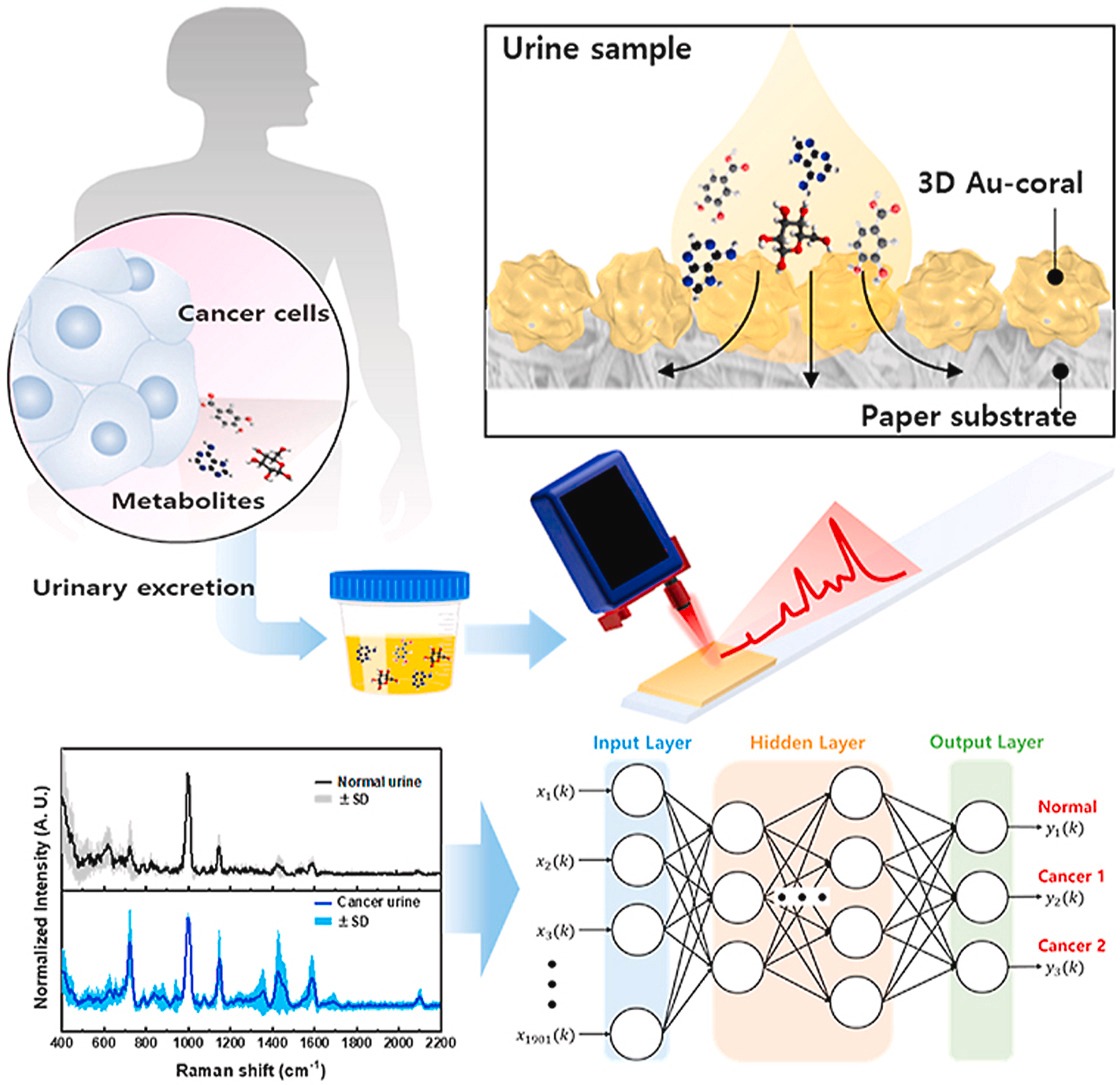 Όταν τα καρκινικά κύτταρα πολλαπλασιάζονται στο σώμα, εκκρίνουν διαφορετικούς μεταβολίτες στα ούρα λόγω μη φυσιολογικού μεταβολισμού. Η ερευνητική ομάδα ανέπτυξε έναν ενισχυμένο επιφανειακά αισθητήρα τύπου Raman, που ενισχύει το οπτικό σήμα των μεταβολιτών στα ούρα περισσότερο από 1 δισεκατομμύριο φορές, σχηματίζοντας ένα νανοϋλικό σε σχήμα κοραλλιού σε πορώδες χαρτί.
