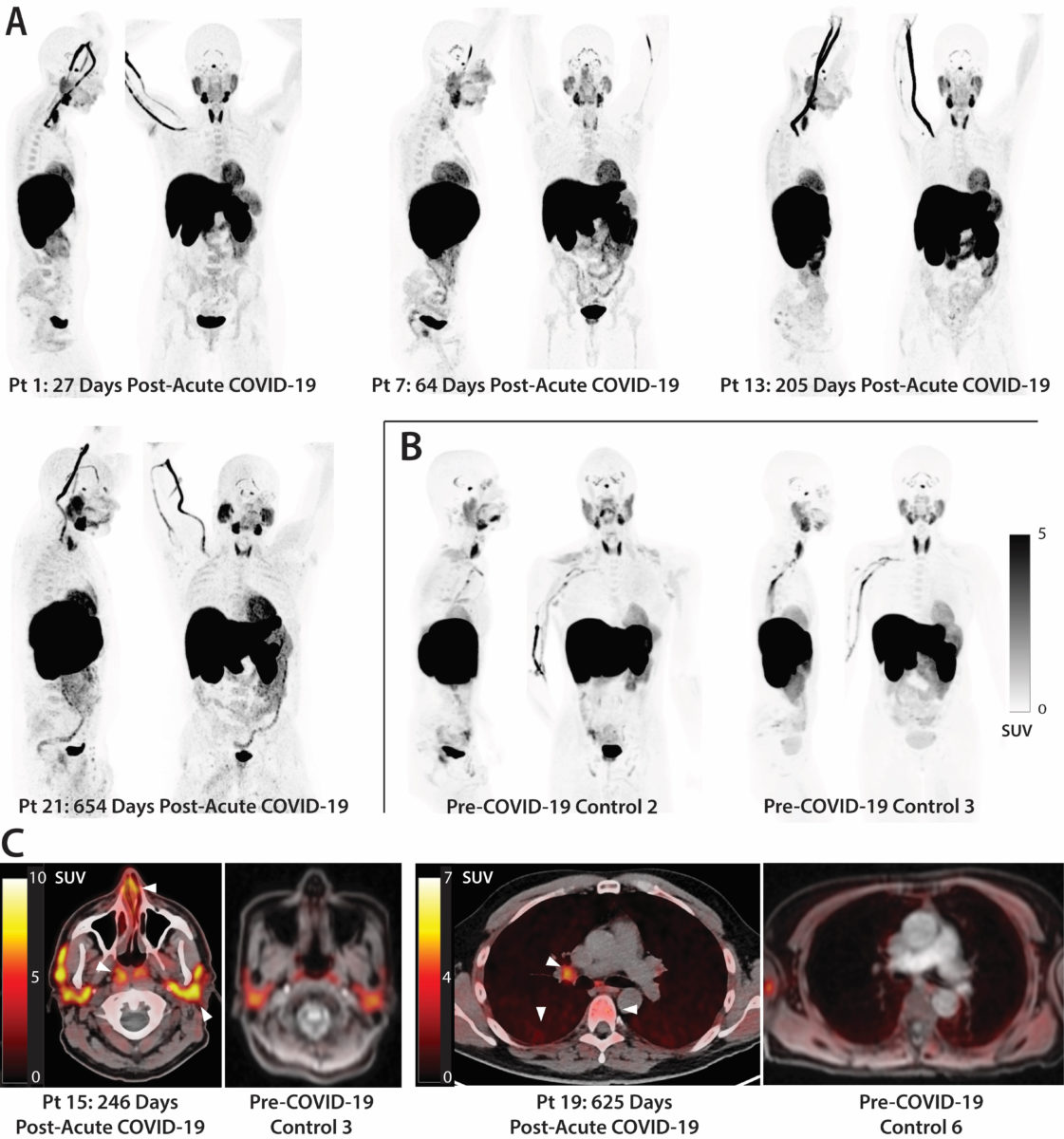 Στη συγκεκριμένη έρευνα συμμετείχαν 24 άτομα που υποβλήθηκαν σε τομογραφία PET σε όλο το σώμα τους. Οι συμμετέχοντες είχαν νοσήσει με Covid-19 από 27 έως 910 ημέρες πριν από την έρευνα.