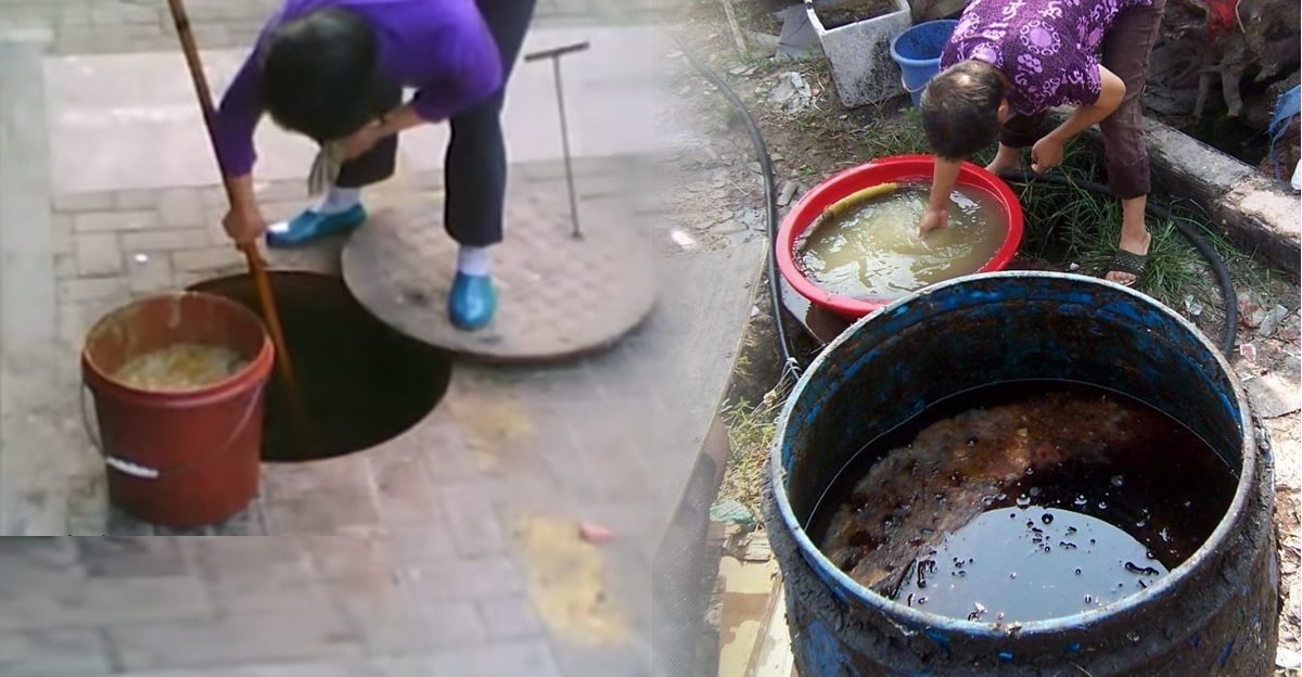 Κάποιοι (φτωχότεροι κατά κανόνα) Κινέζοι ανεβάζουν από τους υπονόμους -σαν να ήταν… πηγάδια- χρησιμοποιημένα έλαια, λίπη και απόβλητα από σφαγεία, τα επεξεργάζονται και τα πωλούν σε εστιατόρια, ξενοδοχεία και άλλες επιχειρήσεις ως μαγειρικό λάδι. Υπολογίζεται ότι το μαγειρικό λάδι από υπονόμους συνιστά το 10% του συνόλου των μαγειρικών ελαίων στην Κίνα. Εκτός από το ότι όλο αυτό είναι απολύτως αηδιαστικό και μόνο ως σκέψη, το επεξεργασμένο μαγειρικό λάδι από υπονόμους πιστεύεται ότι περιέχει καρκινογόνες ουσίες και άλλες τοξίνες.