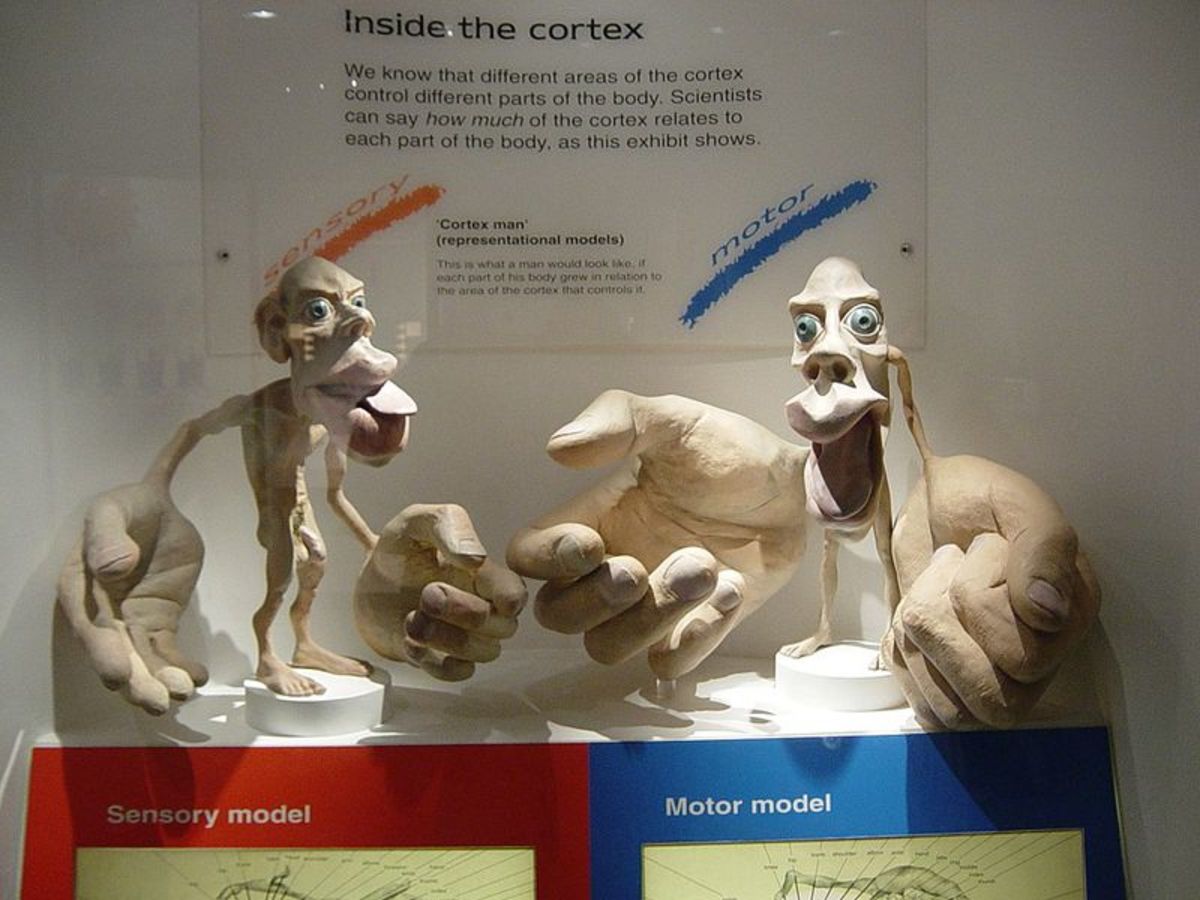 Όπως δείχνει ο homunculus, χρησιμοποιούμε μεγάλο μέρος του πνευματικού μας δυναμικού για την επιδεξιότητα (δείτε τα τεράστια χέρια), την ομιλία (δείτε τα γιγαντιαία χείλη και τη γλώσσα), την μυρωδιά και την όραση. Και δεν διαθέτουμε πάρα πολλά διανοητικά υλικά στο στήθος μας.