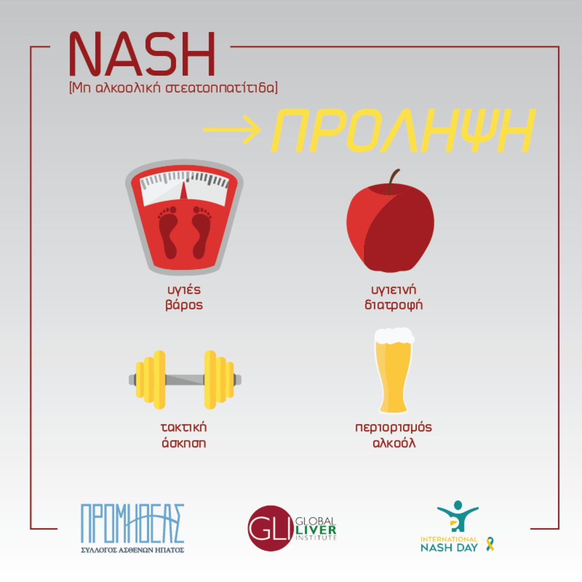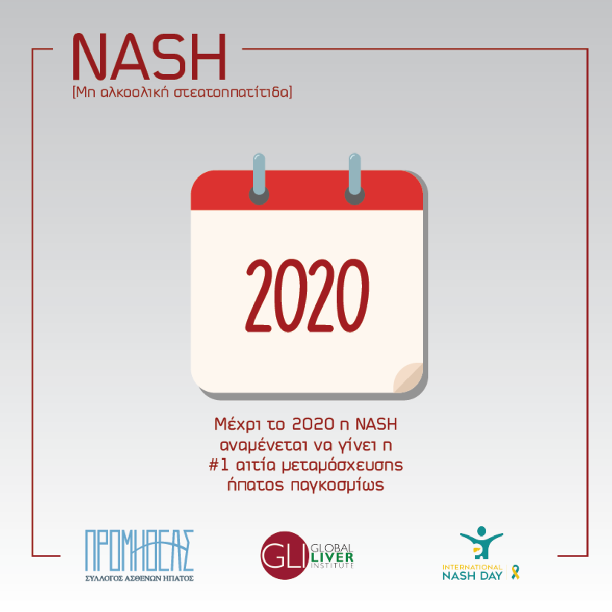 Ο Σύλλογος Ασθενών Ήπατος Ελλάδος «Προμηθέας» αναγνωρίζει την Παγκόσμια Ημέρα μη Αλκοολικής Στεατοηπατίτιδας (NASH) και να ενώνει τη φωνή του με τον οργανισμό «Global Liver Institute» στη μάχη έναντι στη νόσο NASH.