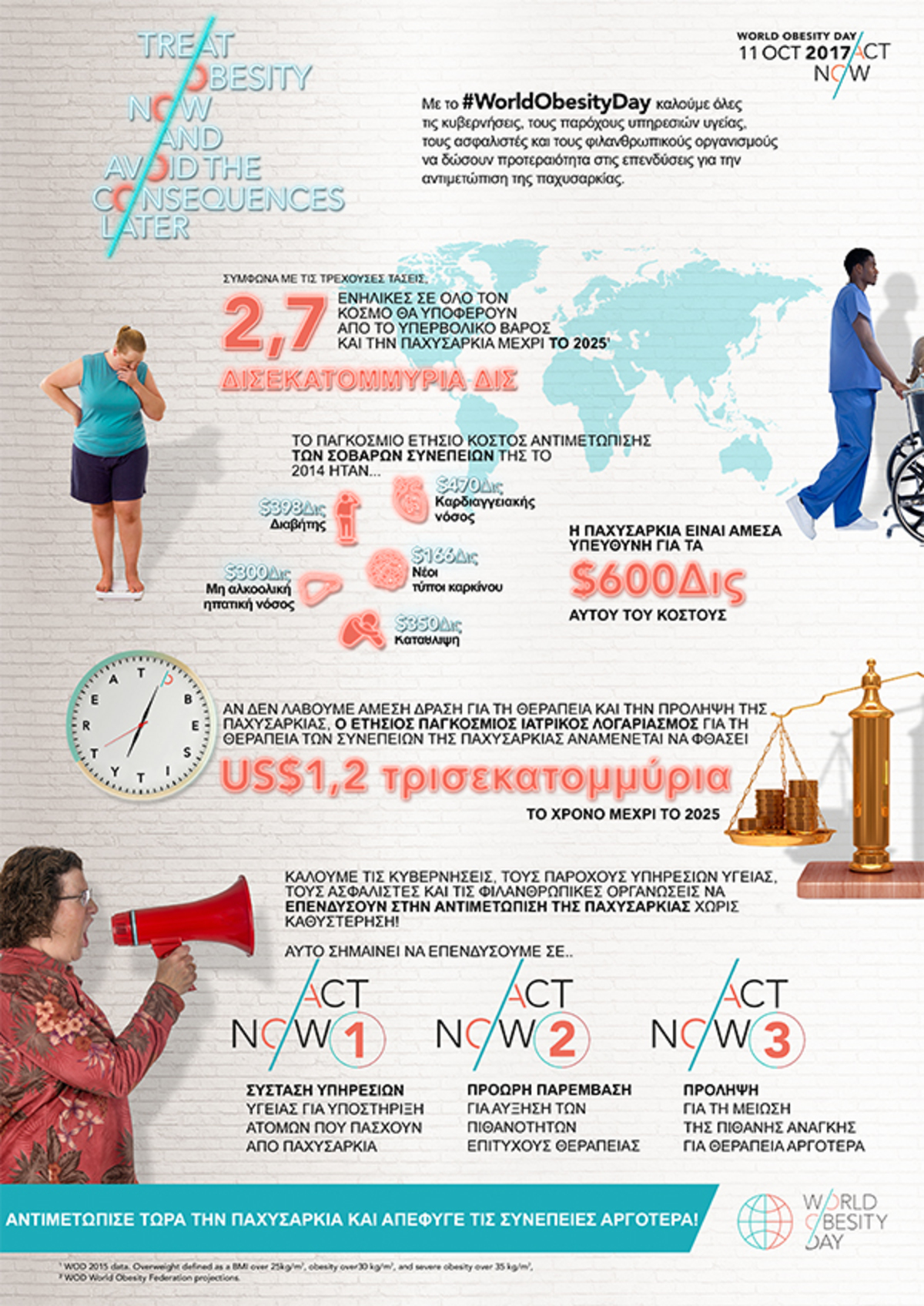 Η φετινή εκστρατεία του World Obesity Federation, επέλεξε το σύνθημα, «Αντιμετώπισε την παχυσαρκία τώρα, για να αποφύγεις τις επιπτώσεις της αργότερα».