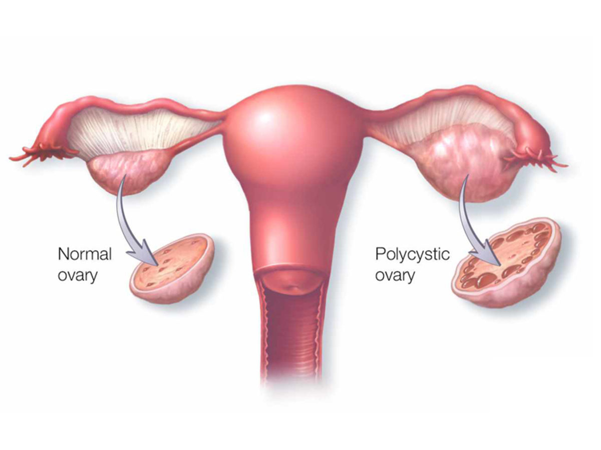 Πού οφείλεται όμως το σύνδρομο των πολυκυστικών ωοθηκών; «Οι ακριβείς αιτίες του δεν είναι γνωστές, αλλά πιστεύεται ότι αποτελεί συνέπεια περιβαλλοντικών και γενετικών παραγόντων», απαντά ο Δρ. Βασιλόπουλος. «Μελέτες έχουν δείξει πως όταν μία γυναίκα πάσχει από αυτό, είναι πολύ πιθανό να το έχει και η μητέρα ή η αδελφή της, ενώ υπάρχουν ενδείξεις ότι οι διαταραχές των επιπέδων μιας ορμόνης που εκκρίνεται από τη υπόφυση (της LH-ωχρινοτρόπου) και τα υψηλά επίπεδα των ανδρογόνων, επηρεάζουν την ομαλή λειτουργία των ωοθηκών. Αυτό έχει ως αποτέλεσμα σε κάθε κύκλο να μην αναπτύσσεται ένα ωοθυλάκιο το οποίο να μπορεί να μεγαλώσει αρκετά ώστε να οδηγήσει σε ωορρηξία, αλλά να αναπτύσσονται πολλά μικρά ανώριμα ωοθυλάκια που φαίνονται σαν κυστίδια, γι’ αυτό και χρησιμοποιούμε τον όρο πολυκυστικές ωοθήκες. Τα μικρά αυτά θυλάκια δεν μπορούν να παράγουν τα αναγκαία οιστρογόνα για την πρόκληση ωορρηξίας και αυτό τελικά οδηγεί σε ανωορρηκτικούς κύκλους και στην αραιομηνόρροια (μεγάλη καθυστέρηση μεταξύ δύο εμμήνων ρύσεων). Επίσης, τα ανδρογόνα όπως για παράδειγμα η τεστοστερόνη, η ανδροστενεδιόνη και η διυδροεπιανδροστερόνη, που κατά κανόνα παράγονται από τις ωοθήκες και τα επινεφρίδια, στην περίπτωση του συνδρόμου αυξάνονται κυρίως λόγω των υψηλών επιπέδων LH, αλλά και λόγω των υψηλών επιπέδων της ινσουλίνης.