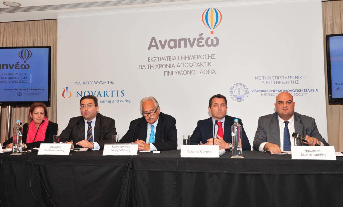 Για την παρουσία και την συμβολή της Novartis στην ενίσχυση της δημοσίας υγείας διεθνώς έκανε λόγο ο πρόεδρος και διευθύνων σύμβουλος της Novartis Hellas Riccardo Canevari, ενώ για την ενημερωτική εκστρατεία «Αναπνέω» μίλησε η επικεφαλής του τμήματος Primary Care της Novartis Hellas Μαριάνθη Ψάχα.