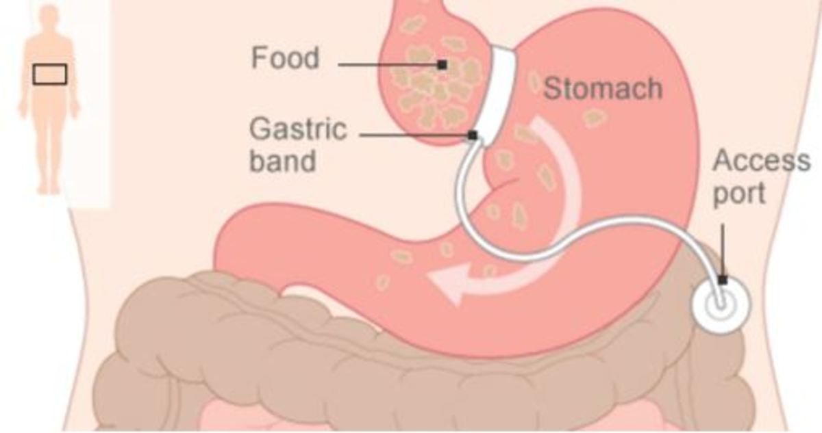 - Γαστρικός δακτύλιος: Σε αυτή την περίπτωση χρησιμοποιείται ένα “δαχτυλίδι”, για να μειώσει το μέγεθος του στομάχου, με σκοπό να χρειάζεται πλέον μικρότερη ποσότητα στο άτομο, για να το κάνει να αισθάνεται πλήρης (δηλαδή ότι έχει χορτάσει).