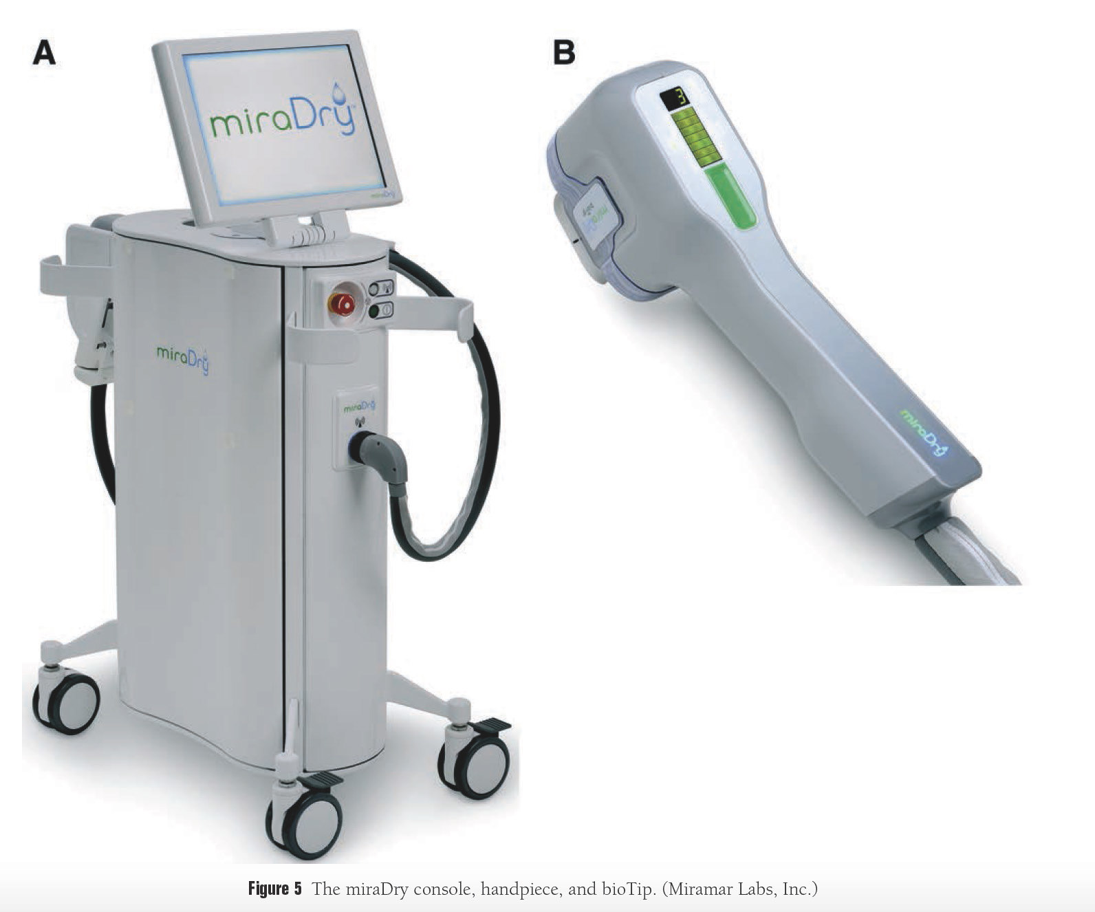 Η θεραπεία miraDry δεν χρησιμοποιεί χημικές ουσίες, όπως το botox. Η καινοτομία της, για την οποία απέσπασε το Βραβείο Pinnell Award 2014, έγκειται στο ότι είναι η πρώτη και μοναδική θεραπεία, η οποία χρησιμοποιεί την πλέον προηγμένη τεχνολογία μικροκυμάτων για την οριστική μείωση της υπερβολικής εφίδρωσης και κακοσμίας στις μασχάλες. Το γεγονός αυτό την καθιστά και την μοναδική θεραπεία κατά της υπεριδρωσίας, που έχει λάβει την έγκριση του αυστηρού αμερικανικού οργανισμού φαρμάκων FDA. Η τεχνολογία αυτή είναι ασφαλής. Στο φάσμα της ηλεκτρομαγνητικής ενέργειας βρίσκεται σε μήκη κύματος που εκπέμπονται ακριβώς ανάμεσα σε αυτά που χρησιμοποιούμε στις αποδεδειγμένα ασφαλείς συσκευές LASER και RF.